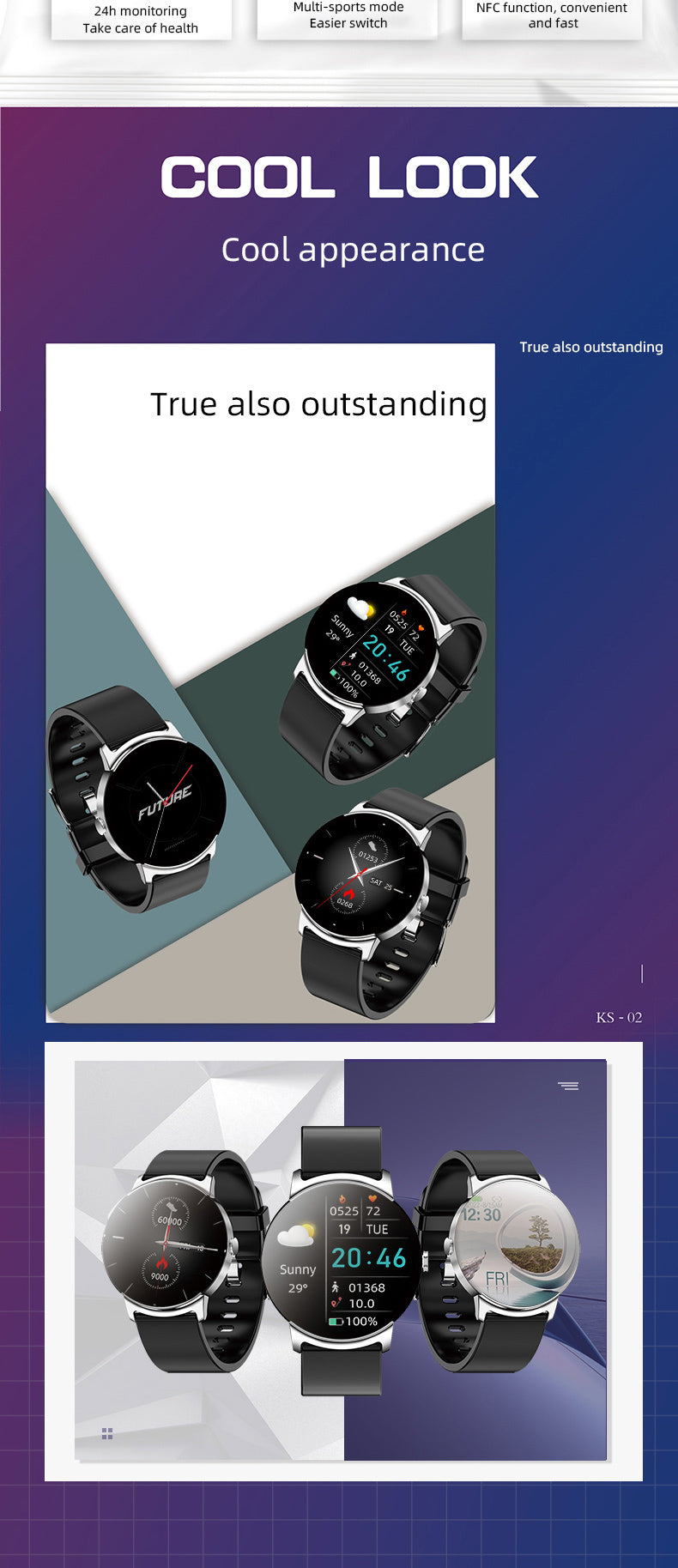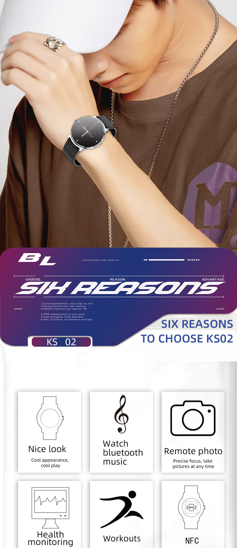 KHS2 Health Fashion Watch Hear Rate Monitoring Blood Pressure Blood Oxygen NFC